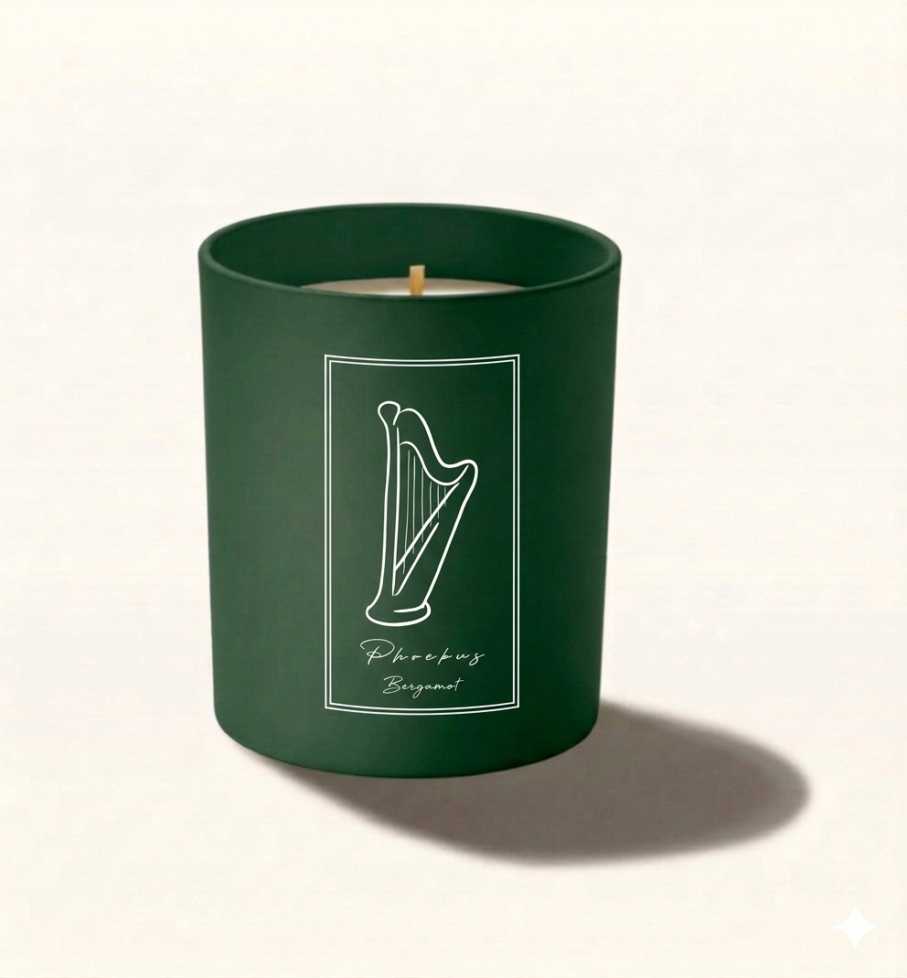 “The Phoebus Bergamot candle is hand-poured in small batches using 100% natural soy wax, sourced from sustainable non-GMO soybeans. The fragrance is derived from pure bergamot essential oil, cold-pressed from the rind of the Citrus bergamia fruit, native to Southern Italy.
